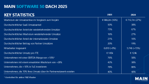 „Dieses Jahr gehen wir einen spannenden Schritt, da wir unseren Fokus auf die gesamte DACH-Region ausweiten. Unser Ranking zeigt, dass Softwareunternehmen weiterhin erheblich in Innovation investieren und ihren Kunden echten Mehrwert liefern. Die Top-Performer – von IT-Sicherheit und Kryptografie über Content Management und Cloud-Lösungen bis hin zu ESG-Technologie – verdeutlichen, wie sich der Sektor an globale Herausforderungen anpasst und die digitale Transformation vorantreibt“, sagte Sven van Berge Henegouwen, Managing Partner und Head of DACH bei Main Capital Partners.